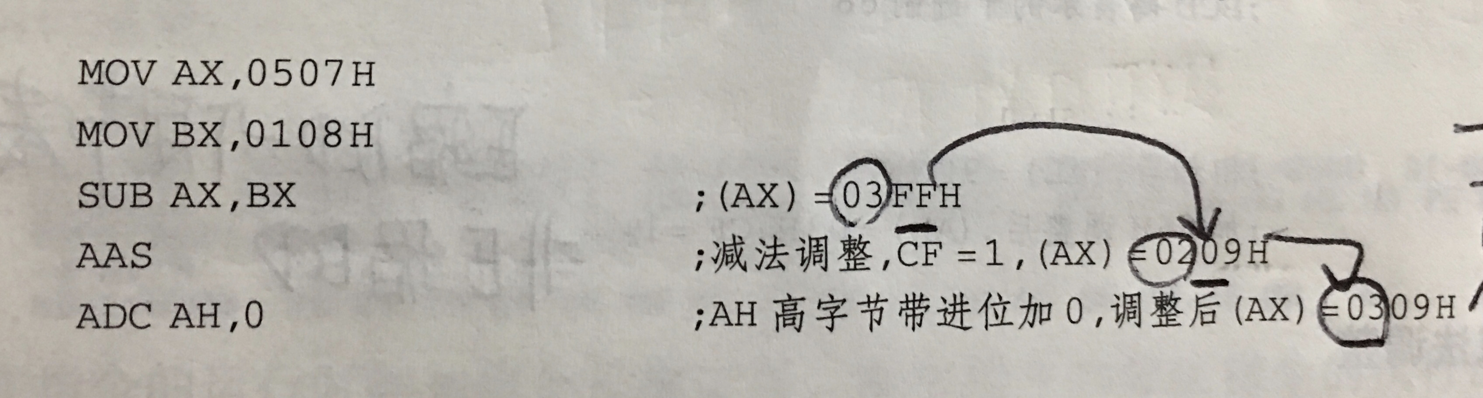- 如果辅助进位AF为1(AC),将AL减6,AH减1,AL的高四位清零,CF置1