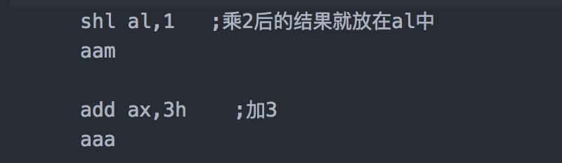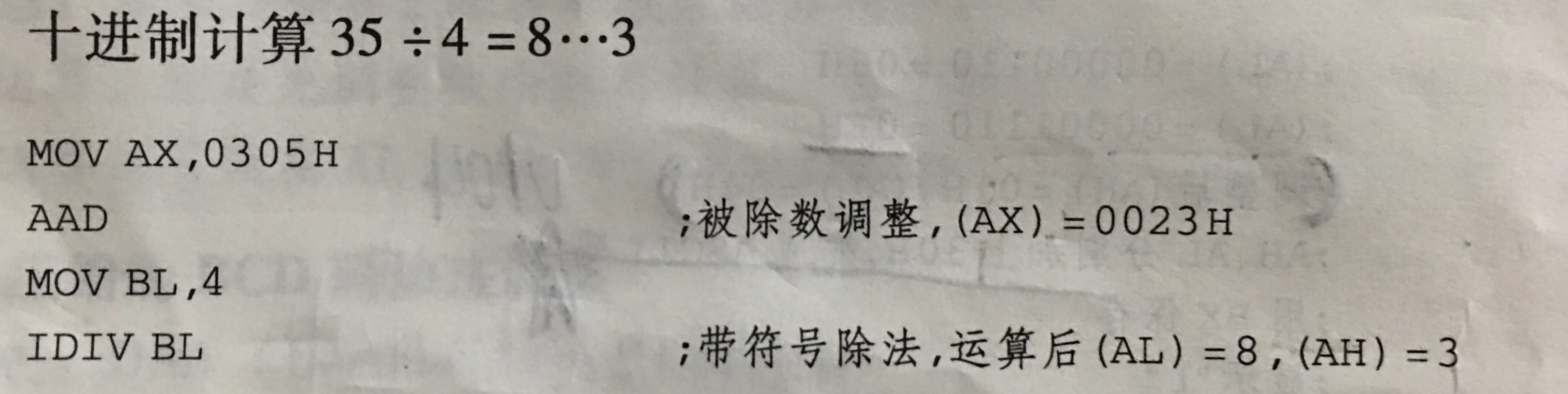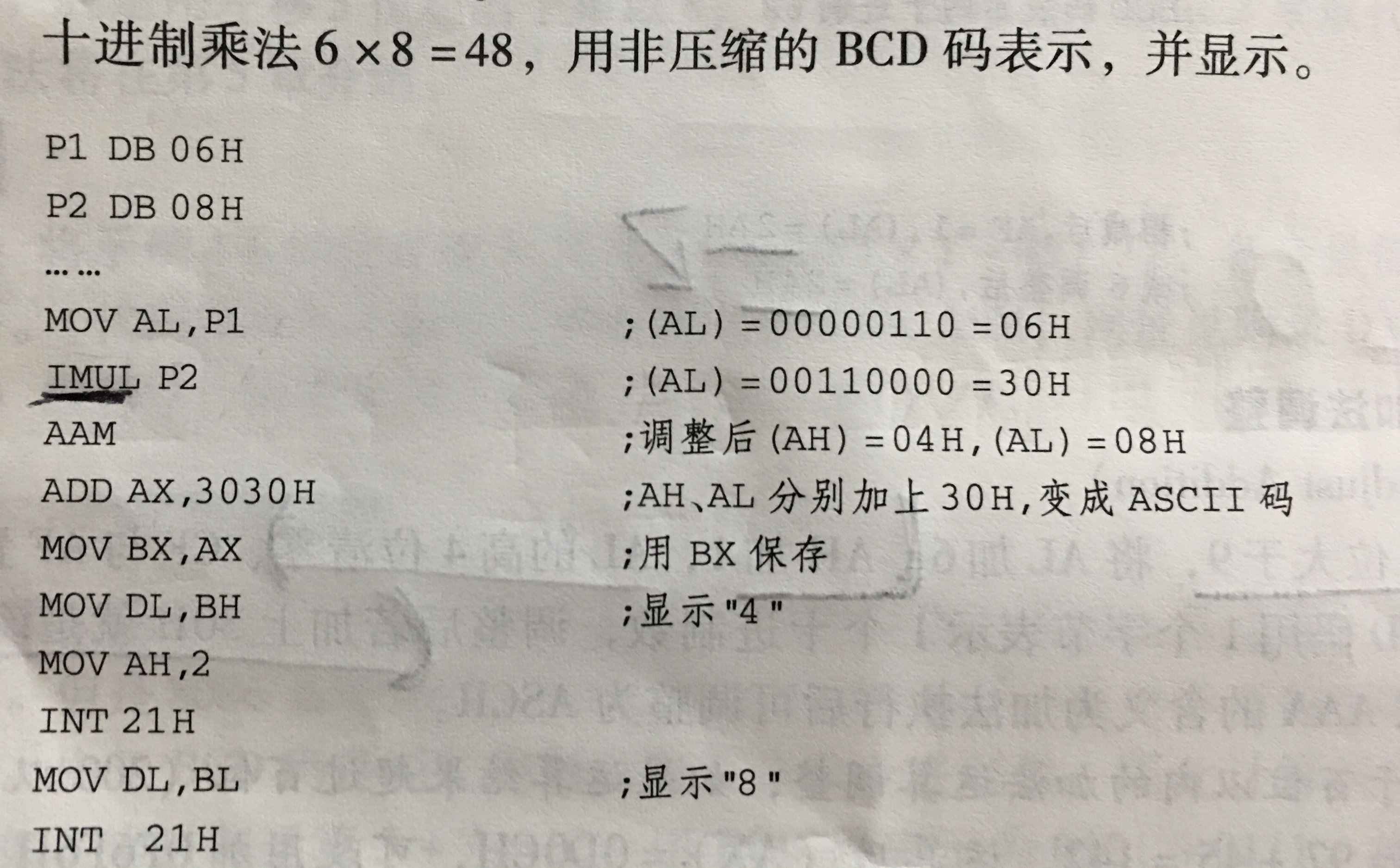 - 将乘积调整为两个非压缩的BCD码,商(高位)送AH,余数(低位)送入AL