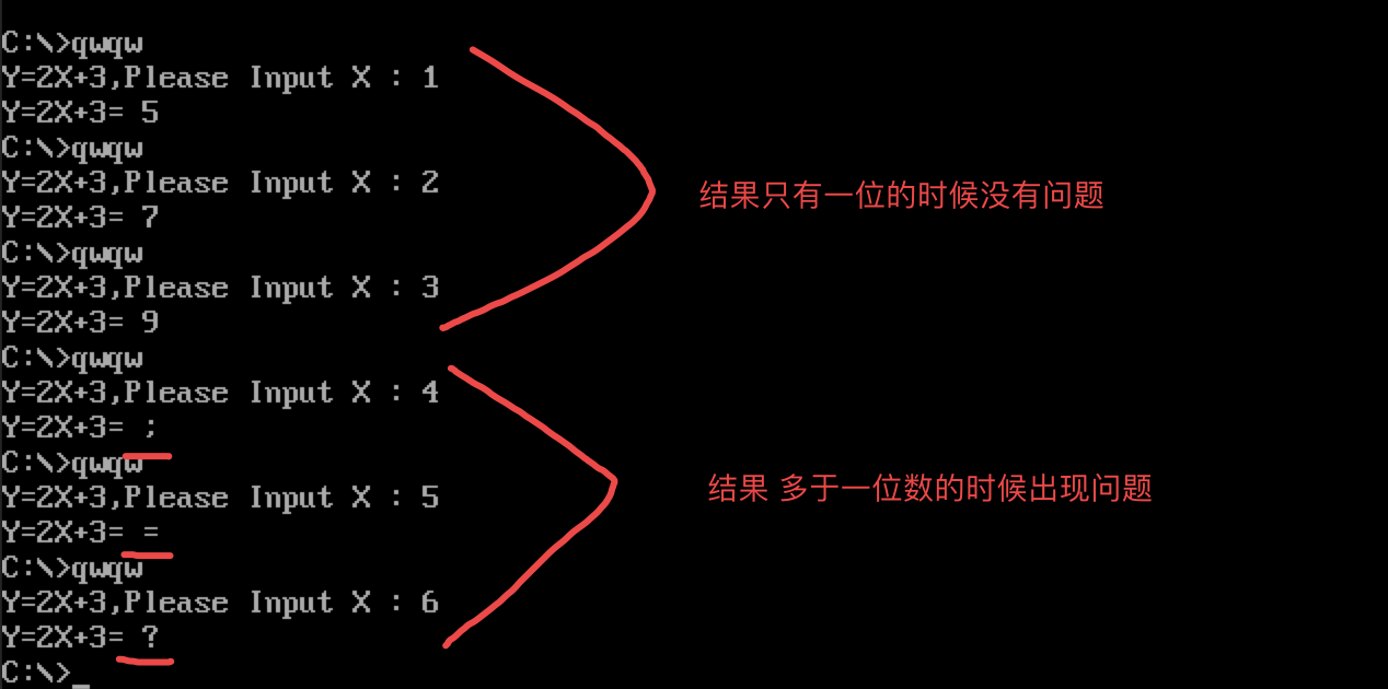 ;显示“Y=2X+3=”,在此之前加入回车换行