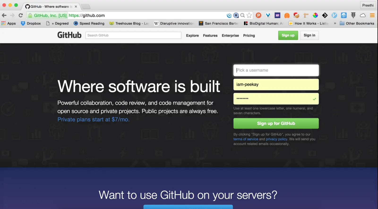 让我们像之前那样开始,在浏览器的地址栏中输入“www.github.com” ,我们会看到页面开始加载。