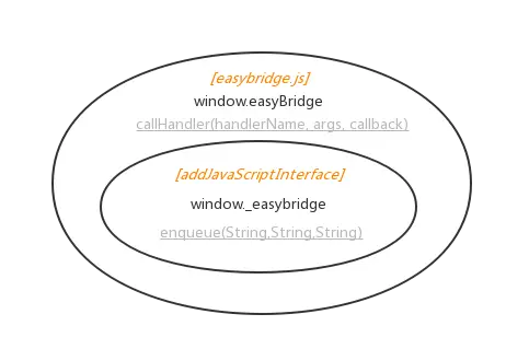 EasyBridgeWebViewEasyBridgeWebView是功能的承载者,负责了bridge对象的注入,以及handler接口的管理(内部使用`EasyBridge对象管理) -