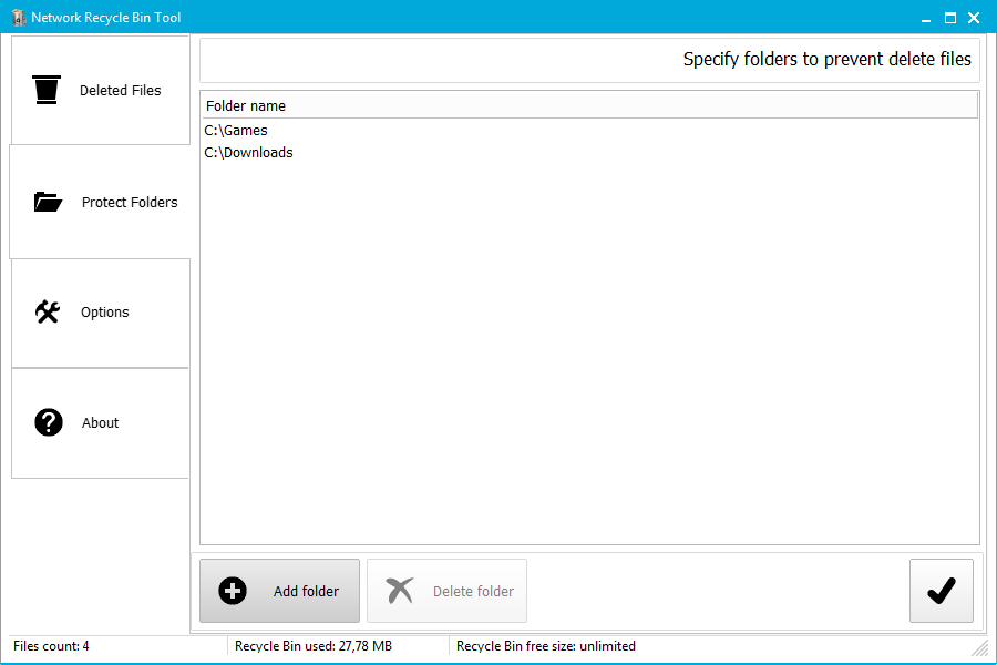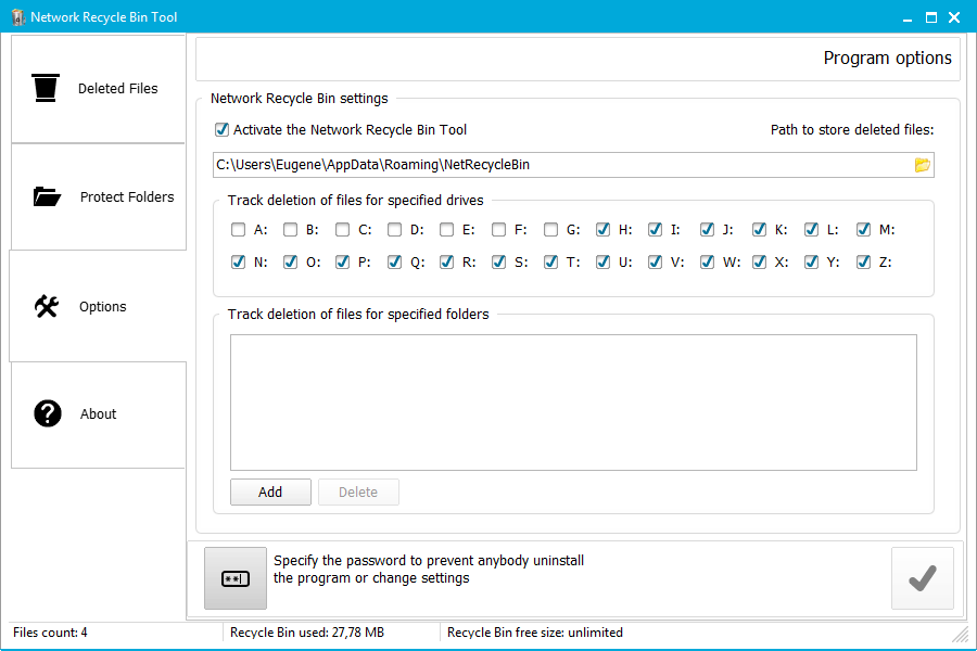 There are various options to tune it up. For example: you can set size limits for files stored in the Network Recycle Bin, you can define the list of network drives or network folders to track deleted files.