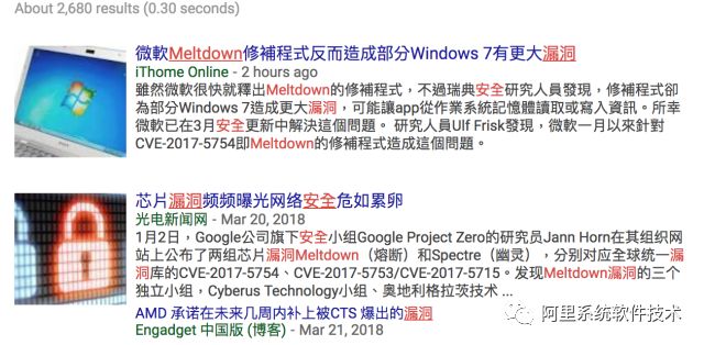 上图为 Google Search Meltdown 安全漏洞搜索结果