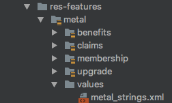 如果有多个屏幕使用资源,请将它们保存在父目录中。例如,metal 特征的字符串被分组到一个文件中,并且其内容被所有的metal 屏幕使用,所以我们将它放在父文件中: