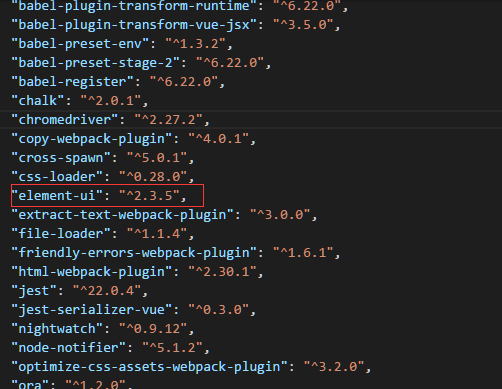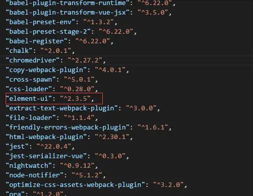 npm install element-ui --save-dev,完成之后瞅一眼package.json文件,看到这个就证明安装成功了。