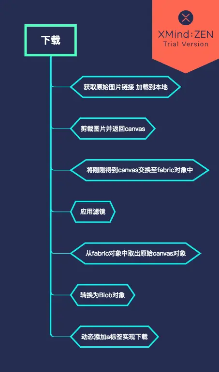 获取原始图片链接并下载到本地后,如果用户选择的尺寸与原尺寸不一致,需要对其裁剪,用到的是pica,裁剪之后放入原生的canvas元素,目的是为了替换画布中原有的canvas元素,然后再应用滤镜(因为图片版权的原因,用户编辑的图片都是带水印的小图,只有氪金用户才能使用下载功能),这样一来,处理的就是刚刚剪裁后的原图。再然后,把处理过的Canvas转换成Blob对象,此时还需要blueimp-canvas-to-blob来兼容一部分浏览器不支持canvas.toBlob的情况。