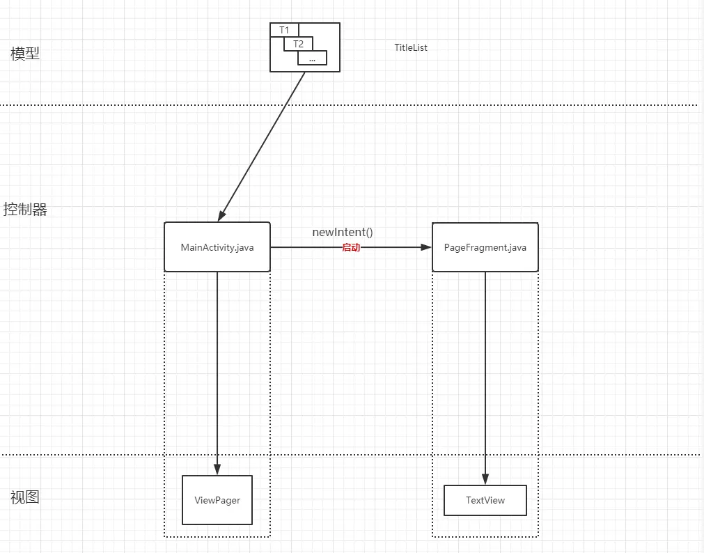 可以看到,这是典型的 MVC 结构,在这里面呢,PageFragment唯一地通过MainActivity.java来创建,虽然我们还没有实现这一步。
