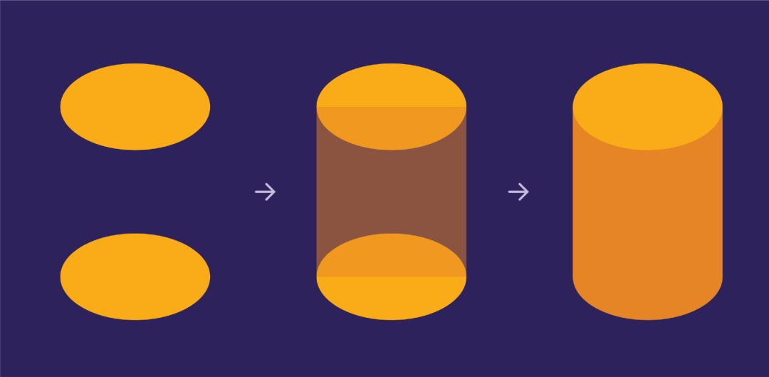 现在,也是一样道理,当我们放置顶部和底部等轴面时,相应的正面和侧面已经自动形成。这在不存在尖锐边缘的物体中特别有用(尖锐边缘可以区分正面和侧面),就像这个圆柱体。