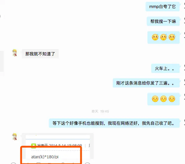 % 绝对坐标系中由斜率算出绝对角度,然后相减得到相对角度