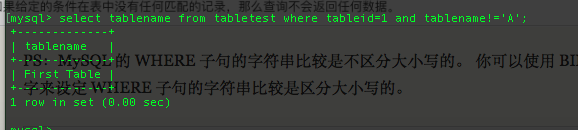 PS:MySQL 的 where 子句的字符串比较是不区分大小写的。 你可以使用 BINARY 关键字来设定 where 子句的字符串比较是区分大小写的。
