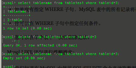 where 子句中可以使用等号 = 来设定获取数据的条件,如 " tableid = 3"。