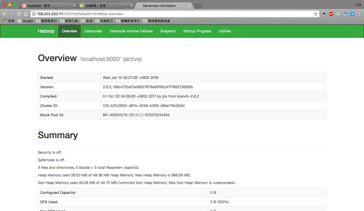 诸位再看一下我另外一台云服务器上的相同操作。这台服务器是海外的,所以当初在官网下载镜像的时候简直快到不可思议。但是后来各种幺蛾子,甚至最近我发现他的NameNode会经常自己关闭,YARN这小畜生也是一样的德行!!