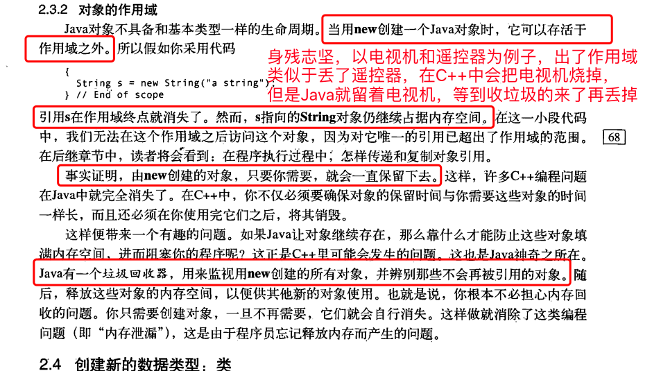 诸位觉得我那个电视机的比喻怎么样?我觉得很不错呀,C++就像是一个有完美强迫症的人。一旦遥控器丢了,也就是说出了作用域,就立马把电视机(对象内容)也丢了,容不得一个废物丢在这里。而Java的话就像是一个勤俭持家的我,就算遥控器丢了,也把电视机留下来,万一后面还用得到呢。