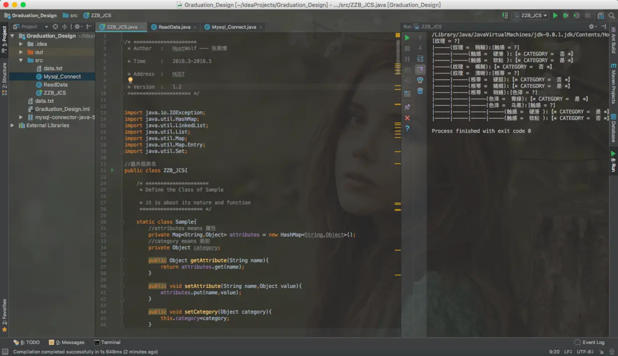 /Library/Java/JavaVirtualMachines/jdk-9.0.1.jdk/Contents/Home/bin/java "-javaagent:/Applications/IntelliJ IDEA.app/Contents/lib/idea_rt.jar=57631:/Applications/IntelliJ IDEA.app/Contents/bin" -Dfile.encoding=UTF-8 -classpath /Users/zhangzhaobo/IdeaProjects/Graduation_Design/out/production/Graduation_Design:/Users/zhangzhaobo/IdeaProjects/Graduation_Design/mysql-connector-java-5.1.44-bin.jar ZZB_JCS