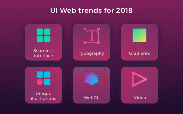 如果现在渐变颜色很流行,那么在2018年,我们将面对与在某个动作中从一个渐变到另一个渐变的平滑过渡相关的趋势。