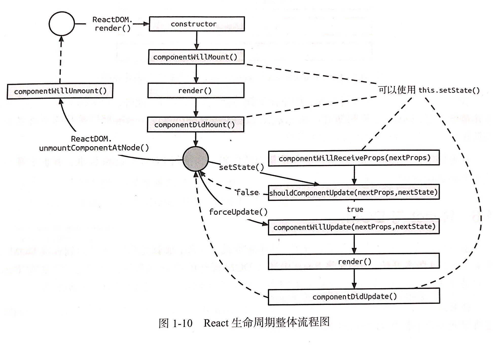 * React的多有组件都继承自顶层React.Compoennt。它只是初始化了ReactComponent方法,声明了props、context、refs等,并在原型上定义了setState和forceUpdate方法。