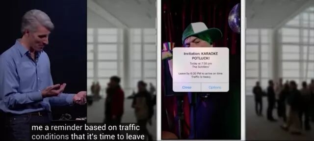 图2. 克雷格·费德里吉(CraigFederighi) 在2015年WWDC上讲解iOS 9的主动性(Proactivity)