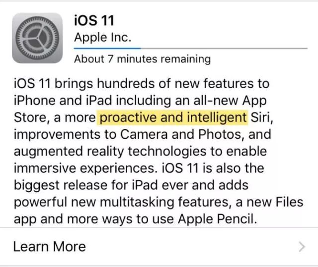 在iOS 11 系统升级描述中出现的“Proactive”一词