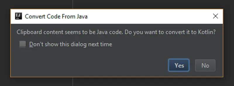 如果你将 Java 代码粘贴到 Kotlin 的文件中,IntelliJ 是会注意到的。
