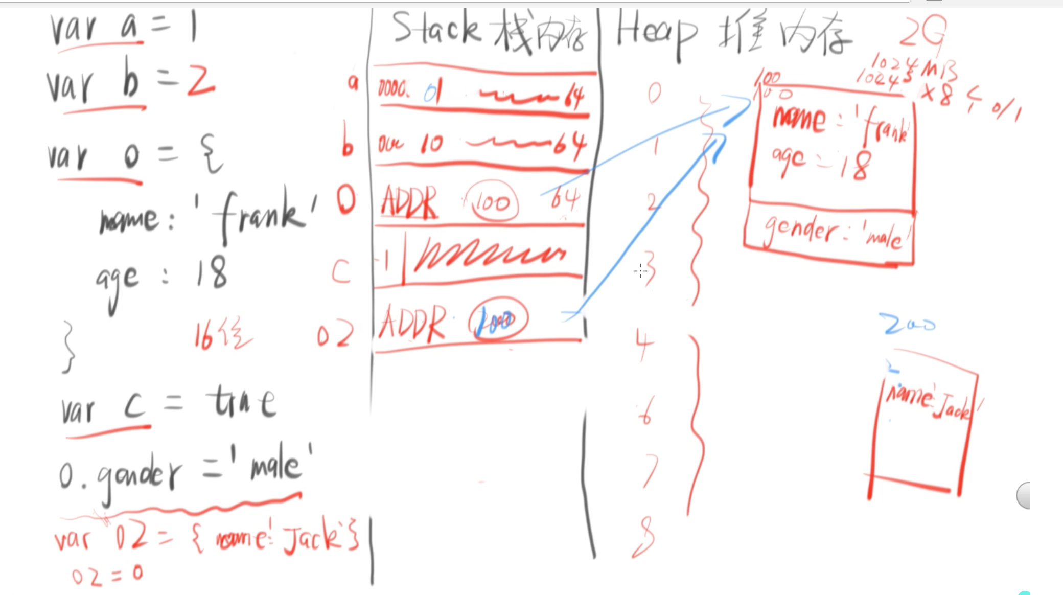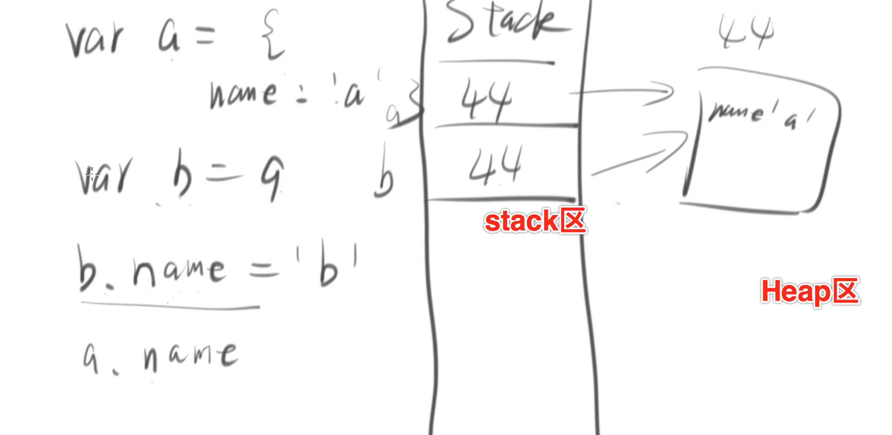因为 我们写下b = a的时候,我们只是把 stack里面a指向的地址复制了一份给b,