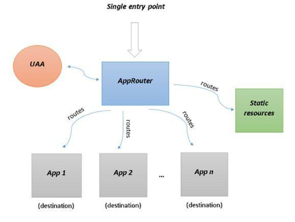SCP App Router是SAP云平台(以下简称SCP)上的核心模块之一,作为独立运行在SCP Cloud Foundry环境中的一个应用程序,它主要支持以下两大核心功能: