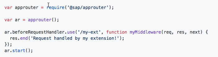 只要说到SAP的产品,extensibility是一个不可避免的话题,这是由SAP的业务是面向企业级客户这一特质决定的。SAP也一直致力于从平台到框架,再到上层的产品,尽可能多的给SAP客户提供良好的可扩展性。App Router同样也不例外,因为直接使用了Node.js的connect框架,这是一款本身就提供了丰富扩展的中间件框架,可以通过可插拔的方式对Node.js的请求和响应提供过滤和拦截,具体大家可以参考connect的主页。