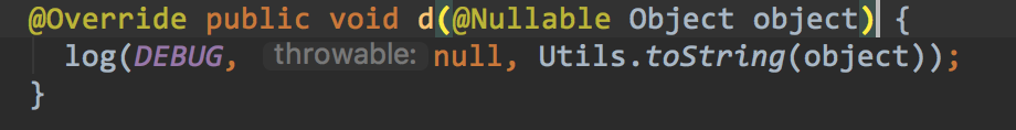 Logger 最终调用的还是 Log.println(int priority, String tag, String msg) 方法,以 Logger.d() 为例, 一步步查看