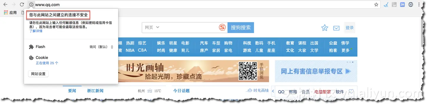图示:未部署HTTPS的网站被谷歌标识为不安全