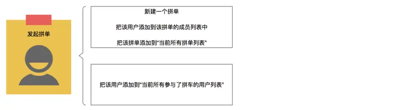 当用户确定并分享了一个拼单之后,会直接新建一个拼单,同时把该用户添加到当前所有参与了拼车的用户列表列表里面,并且添加到该拼单的成员列表当中: