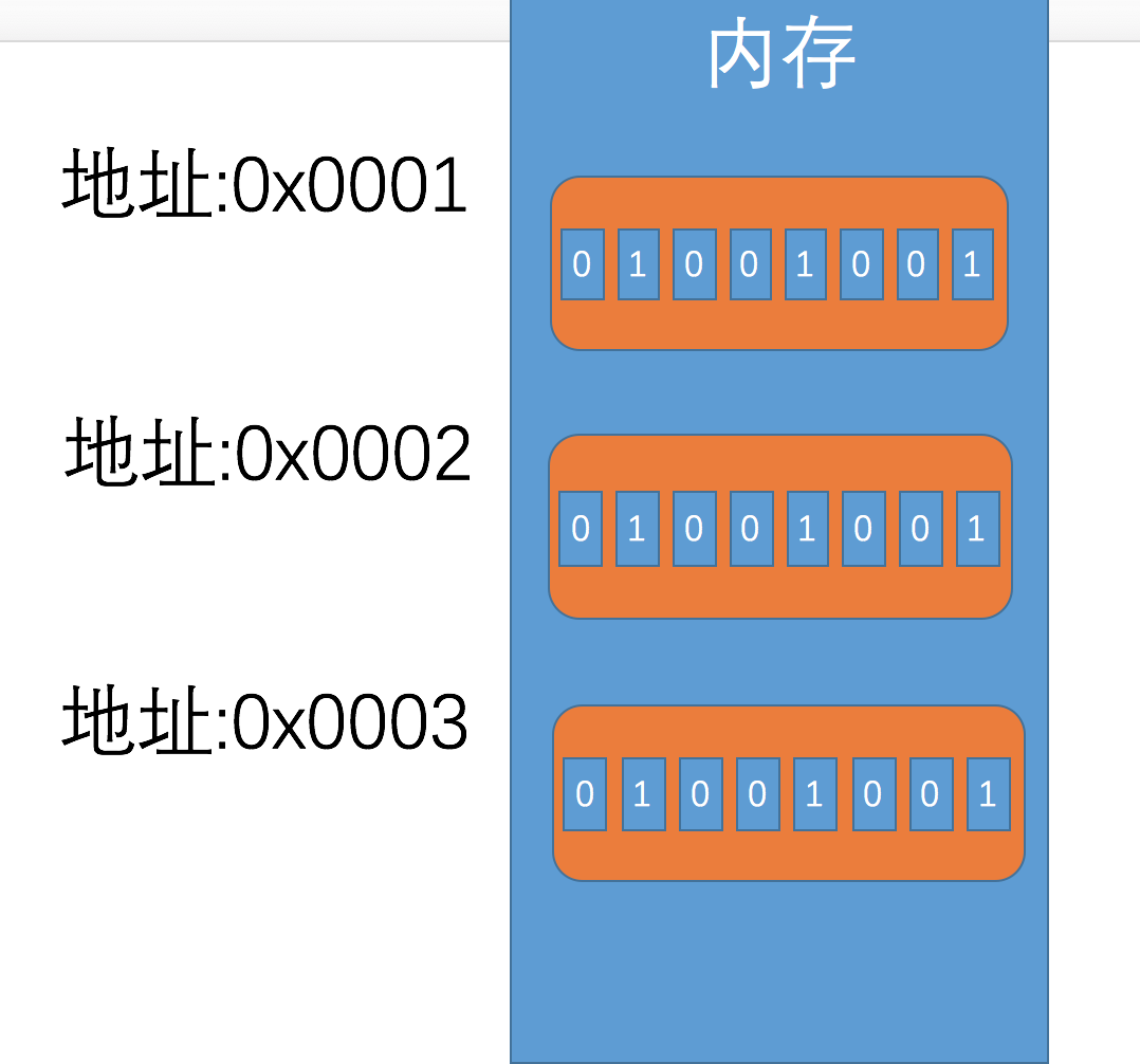 - 字节(Byte): 1个字节由8个Bit组成(8位).内存中的最小单元Byte.