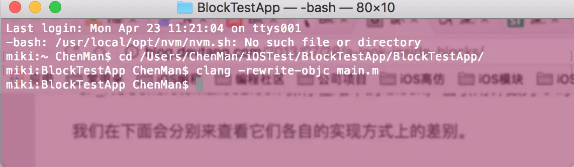 为了研究编译器是如何实现 block 的,我们需要使用 clang。clang 提供一个命令,可以将 Objetive-C 的源码改写成 c 语言的,借此可以研究 block 具体的源码实现方式。