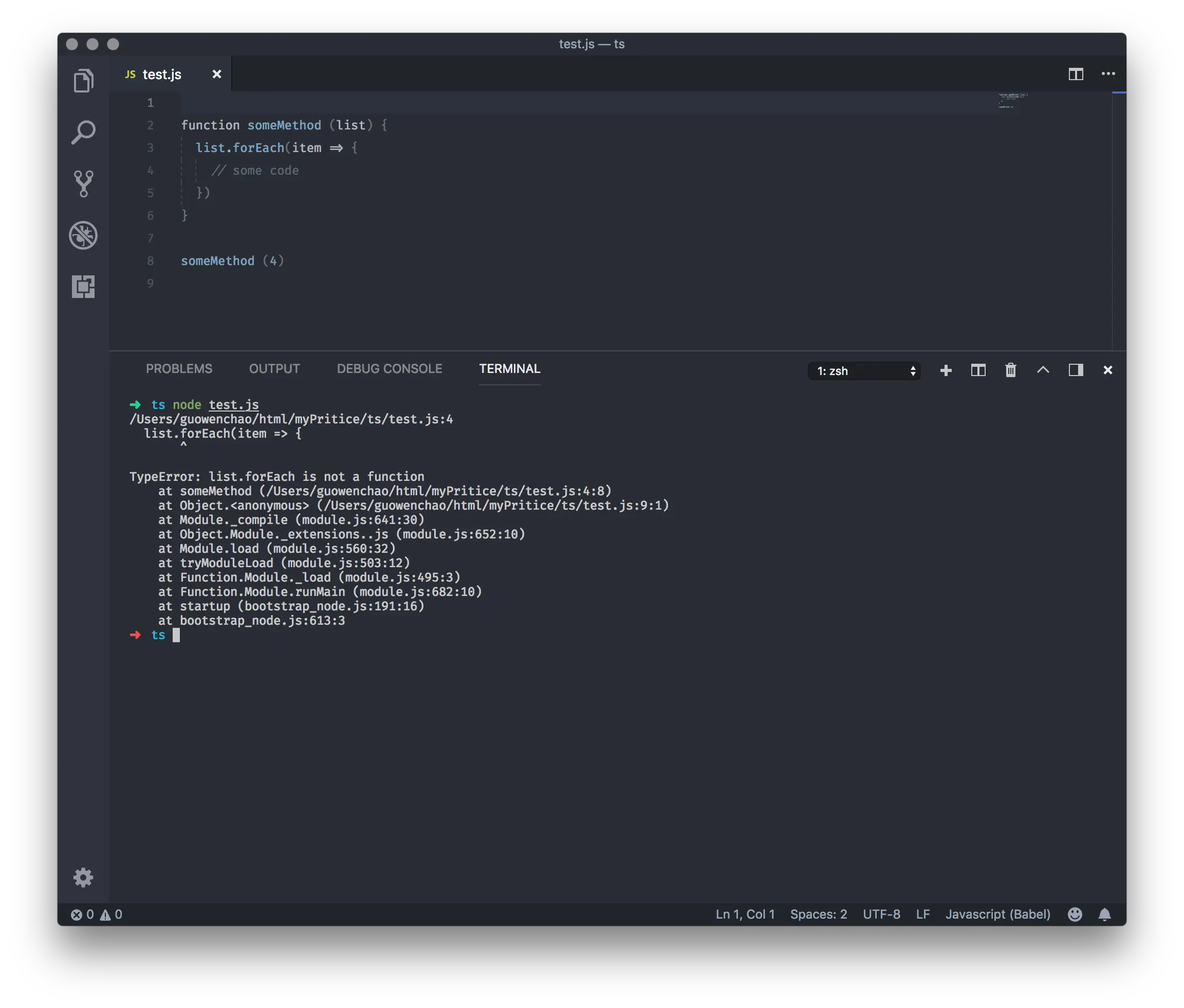 在这个简单的例子里,我们认为 someMethod 的参数一个数组,可是实际情况并不是,它是一个数字。理所当然,它报错了。