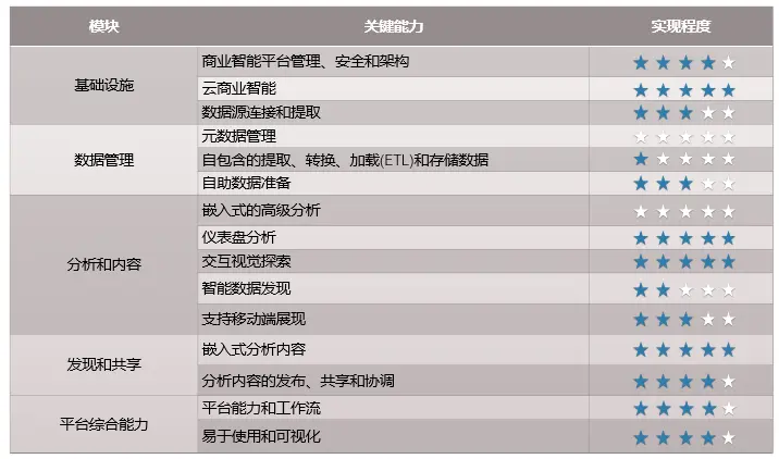 1、到2020年,智能、企业管理级、Hadoop/Spark、基于搜索和可视觉化的数据探索发现能力将融合成为下一代商业智能和分析 平台的功能组成;