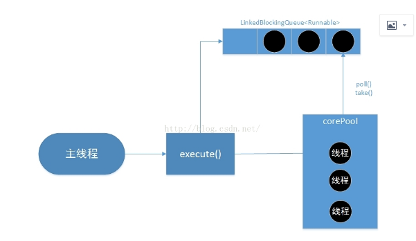 2.当线程池的工作中的线程数量达到了corePool,则将任务加入LinkedBlockingQueue。