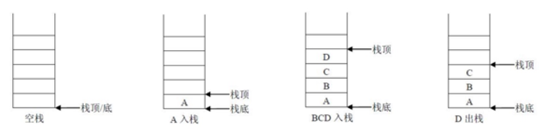 - 栈:是一种具有特殊的访问方式的存储空间(后进先出, Last In Out Firt,LIFO)