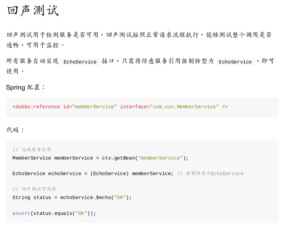 在AbstractProxyFactory的getProxy会在代理的接口中加入EchoService接口,也就是回声服务,使用方式如下