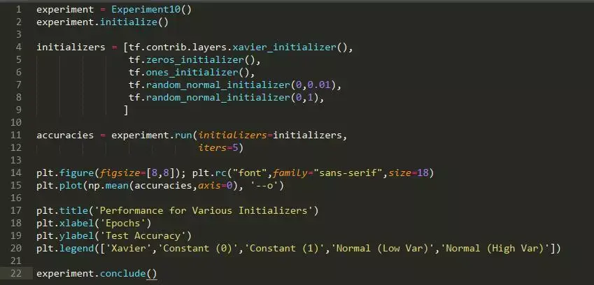 假设: 我们期望 Xavier 损失具有最好的性能(它是 tensorflow 中使用的默认值),而其他方法性能不佳(尤其是不断的初始化)。