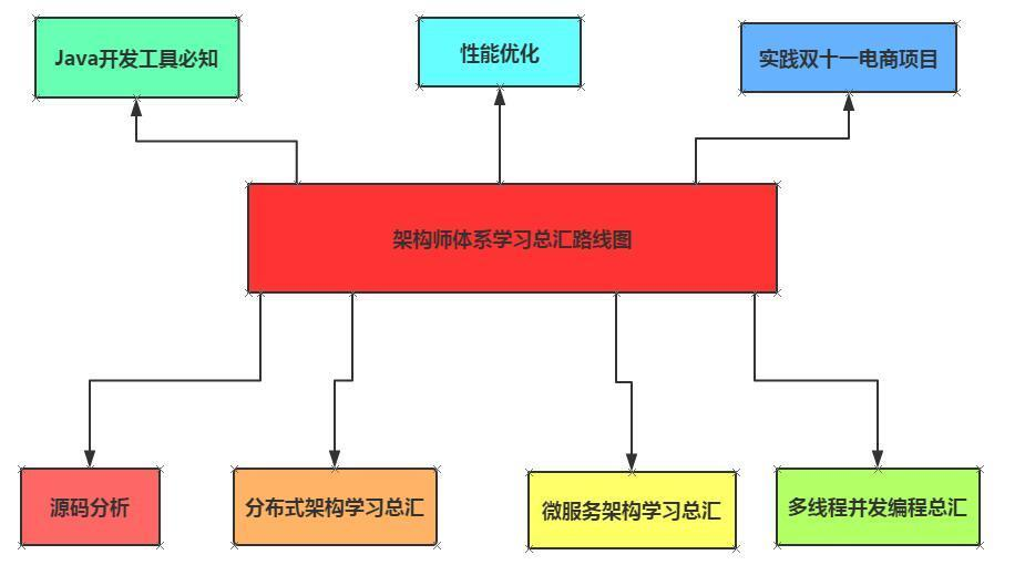微服务技术是程序员绕不开的话题,想要了解更多微服务架构知识点的,可以关注我一下,我后续也会整理更多关于微服务架构这一块的知识点分享出来,另外顺便给大家推荐一个交流学习群:650385180,里面会分享一些资深架构师录制的视频录像:有Spring,MyBatis,Netty源码分析,高并发、高性能、分布式、微服务架构的原理,JVM性能优化这些成为架构师必备的知识体系。以下的学习路线图也是在群里获取。
