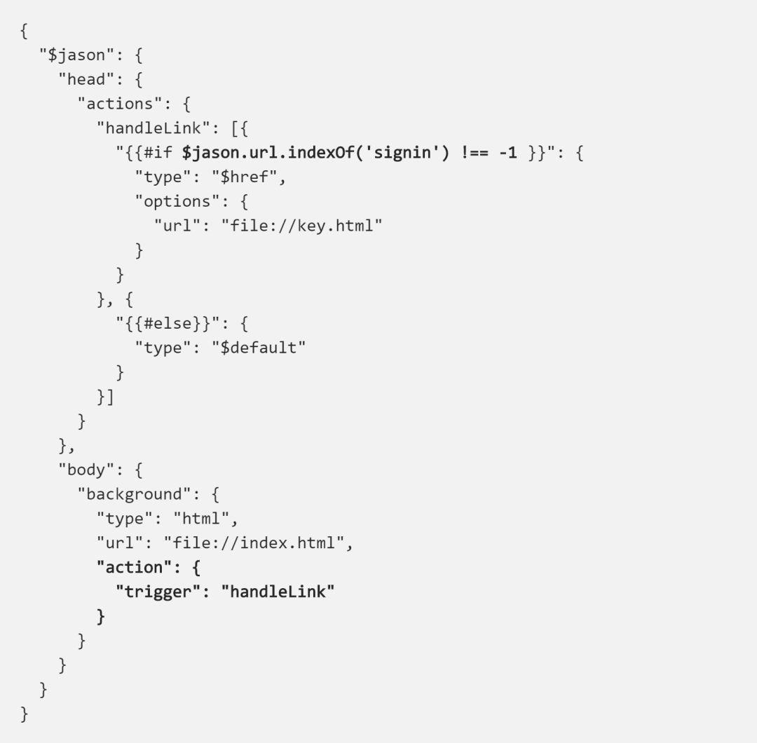 我们甚至可以通过几十行 JSON 代码构建一个自定义的 Web 浏览器。由于现在可以劫持每个链接点击,因此可以检查$jason.url,并根据结果运行我们需要的任何操作。