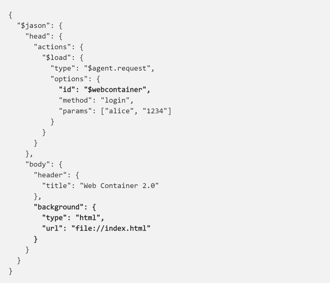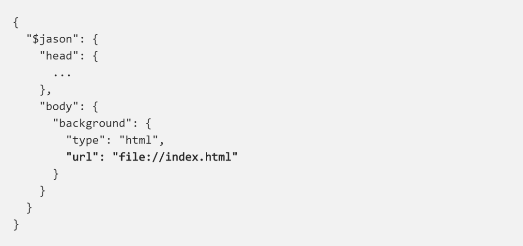 Web 容器在 $jason.body.background 下定义,本例中将会加载一个名为file://index.html的本地文件。