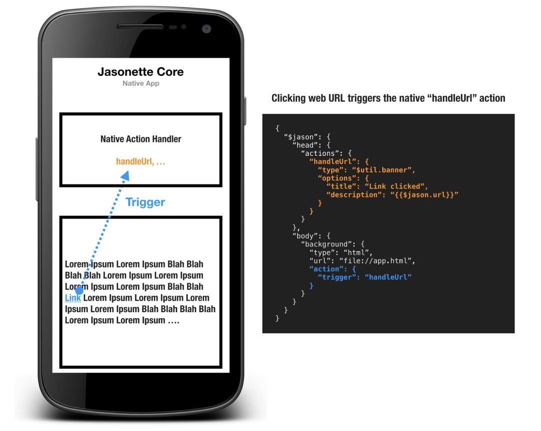 通过使用新的 Web 容器,可以将任何action附加到$jason.body.background这个 Web 容器,进而处理链接点击之类的事件。