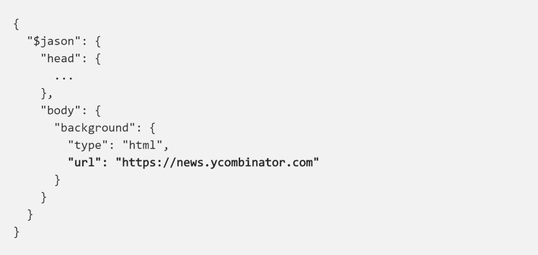 实现:交互式 Web 容器 1. 通过 URL 加载 问题之前在第 1 版中,为了使用 Web 容器作为后台视图组件,我们首先需要将$jason.body.background.type设置为"html",随后在$jason.body.background.text属性下添加硬编码的 HTML 文本,例如这样: