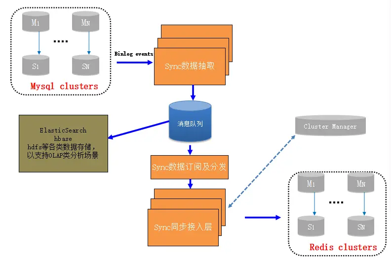 该服务完全可以抽象成独立的数据同步分发服务,对于因为KV化而丢失的sql处理完全可以通过该服务同步到偏OLAP类的系统中进行处理。除了同步到Redis还可以同步到ElasticSearch或者hbase或者写hdfs文件基于hadoop生态去实现复杂计算和分析。