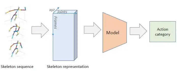 动作识别和检测等对人类行为的分析是计算机视觉领域一个基础而又困难的任务,也有很广泛的应用范围,比如智能监控系统、人机交互、游戏控制和机器人。铰接式的人体姿态(也被称为骨架(skeleton))能为描述人体动作提供非常好的表征。一方面,骨架数据在背景噪声中具有固有的稳健性,并且能提供人体动作的抽象信息和高层面特征。另一方面,与 RGB 数据相比,骨架数据的规模非常小,这让我们可以设计出轻量级且硬件友好的模型。