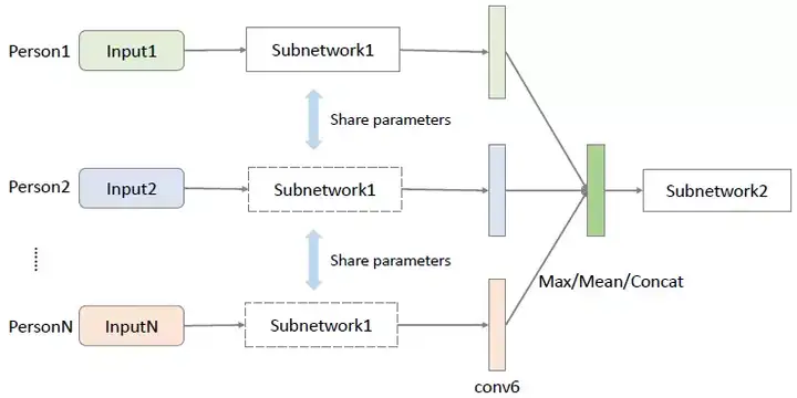 - 我们全面地使用了多人特征融合策略,这让我们的网络可以轻松地扩展用于人数不同的场景。