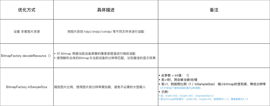 Bitmap的使用优化,具体如下图