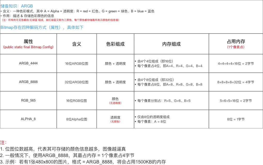 优化原因 不同的图片解码方式 对应的 内存占用大小 相差很大,具体如下