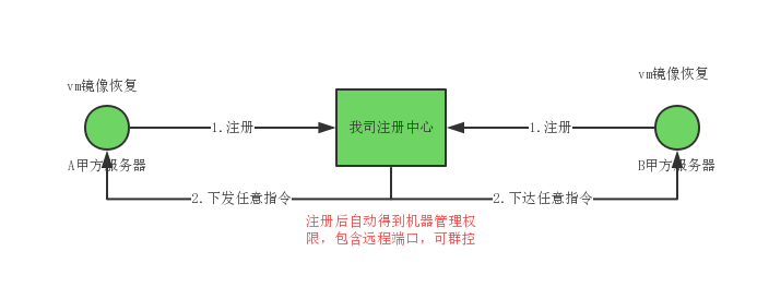 在环境部署问题上,我们经历了3个阶段:传统安装、镜像恢复、自动发现注册+指令下达。目前镜像恢复后,启动虚拟机,一旦能ping通我们公司地址,就会自动注册这台机器(即使没有其他外网访问权限、也未开放任何对外端口),我们也就有了这台机器的管理权限,可批量群控下发指令。(第二阶段、第三阶段均为我自主设计。)