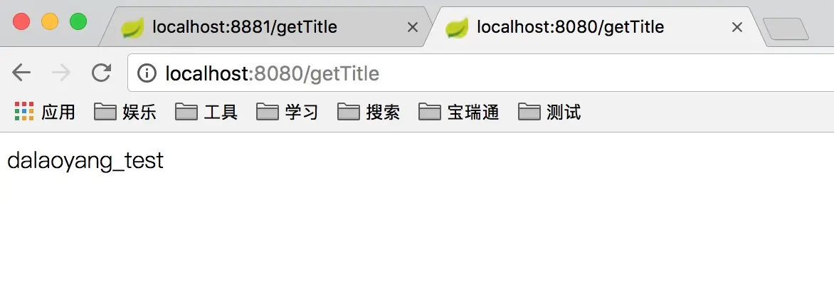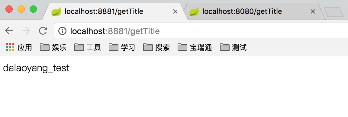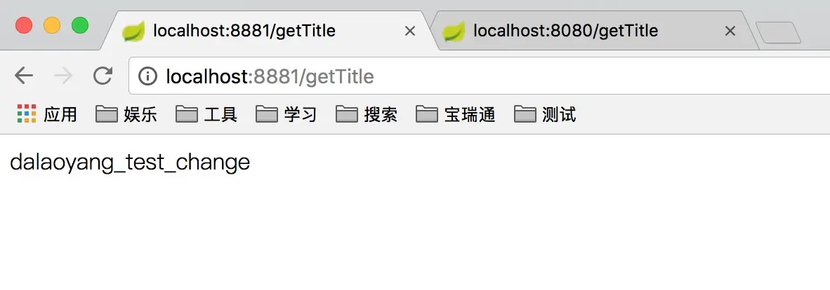 先将git上配置改回dalaoyang_test,分别请求http://localhost:8881/getTitle和http://localhost:8080/getTitle结果如下: