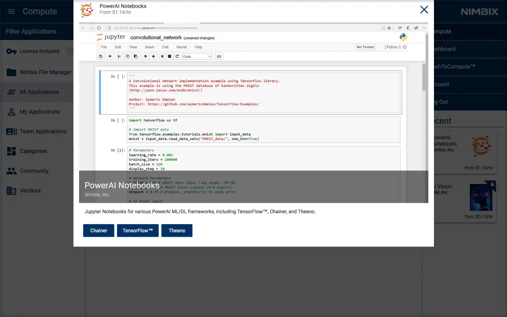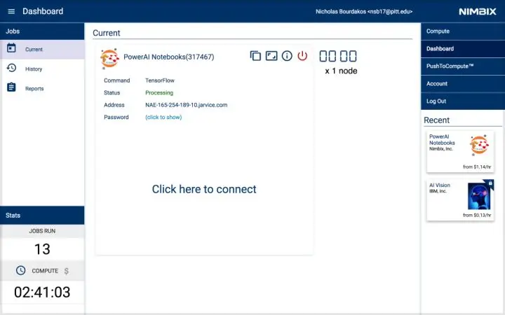 开发者可以在 Nimbix 创建一个账户,每个账户可以在 PowerAI 上免费处理数据10小时。点击这里注册。